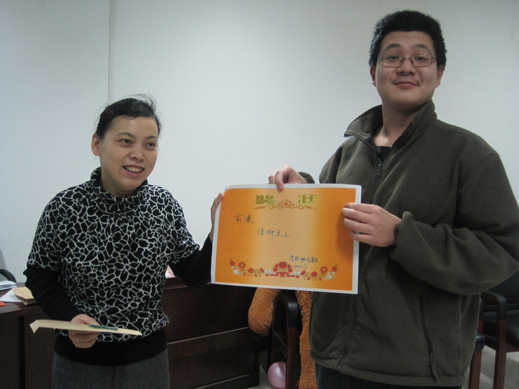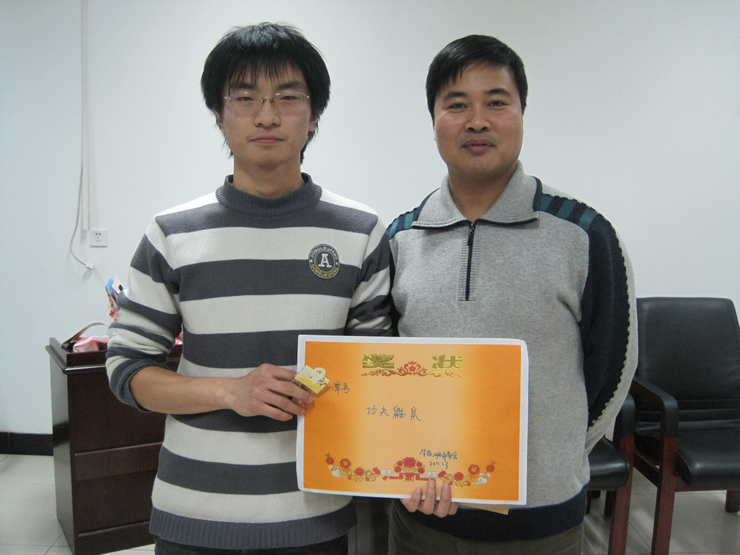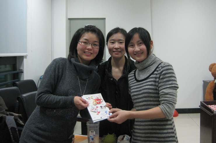近两个小时轻松而活跃的颁奖典礼之后,大会开始了礼物交换的温馨环节。每个人手里都拿着随机抽取的礼物,载着一份祝福,怀着一份幸福。班委会为感谢两年来石福臣老师、严冰老师以及露露老师的指导与帮助分别向他们送上了生技二班全体同学诚挚的谢意与祝福。