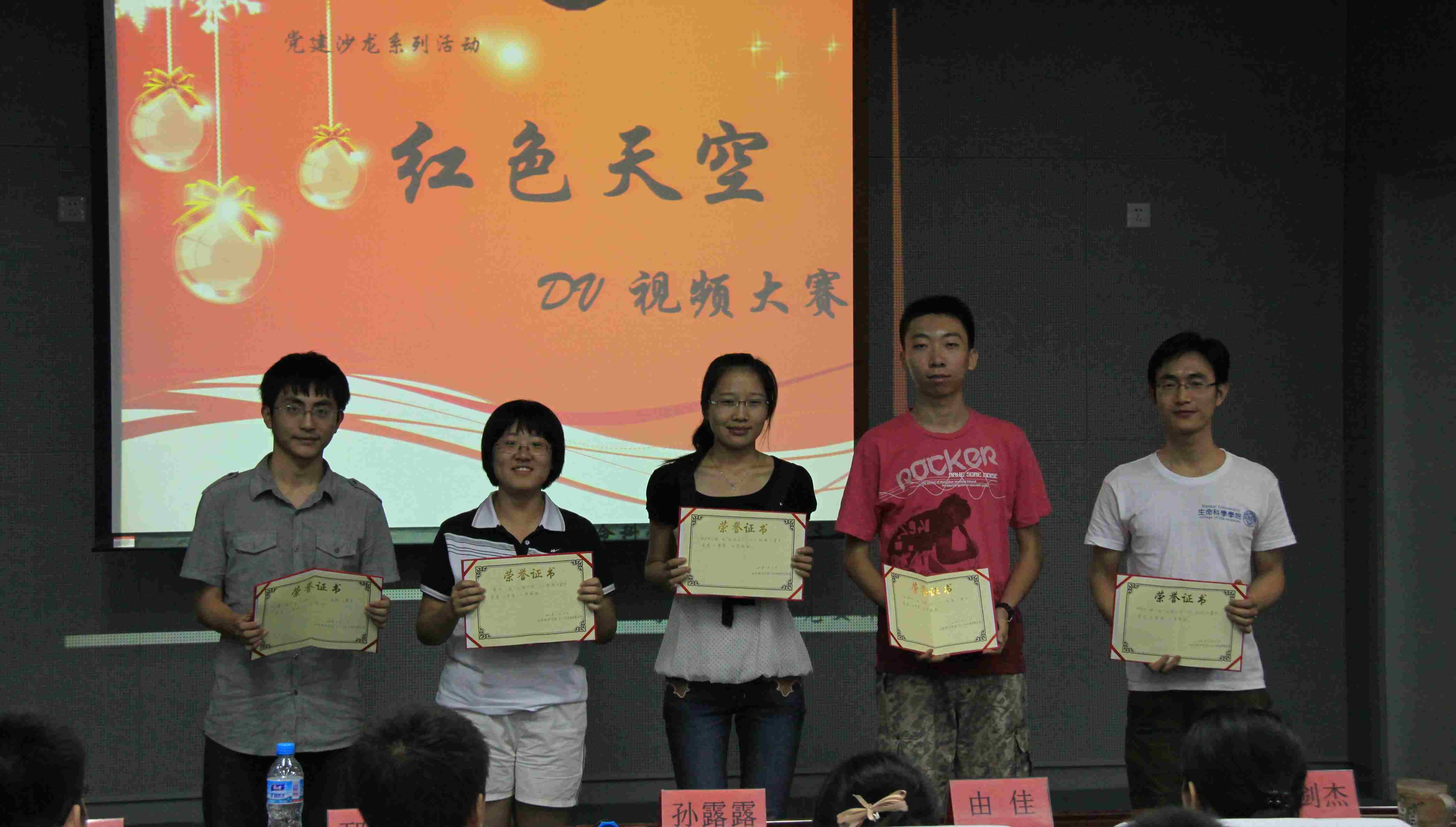 6月10日晚,生科院报告厅内一片温馨欢乐的景象,“红色天空DV视频大赛”精彩纷呈。大赛以外围买球app十大平台官网第22期学生业余党校5个小组为单位,以各组所拍摄的公益广告展示为主体上演。生科院08级辅导员孙露露、09级辅导员邵剑杰、10级辅导员由佳、硕士生第二党支部书记邴铁军及研究生会主席贾正虎出席并担任大赛评委。