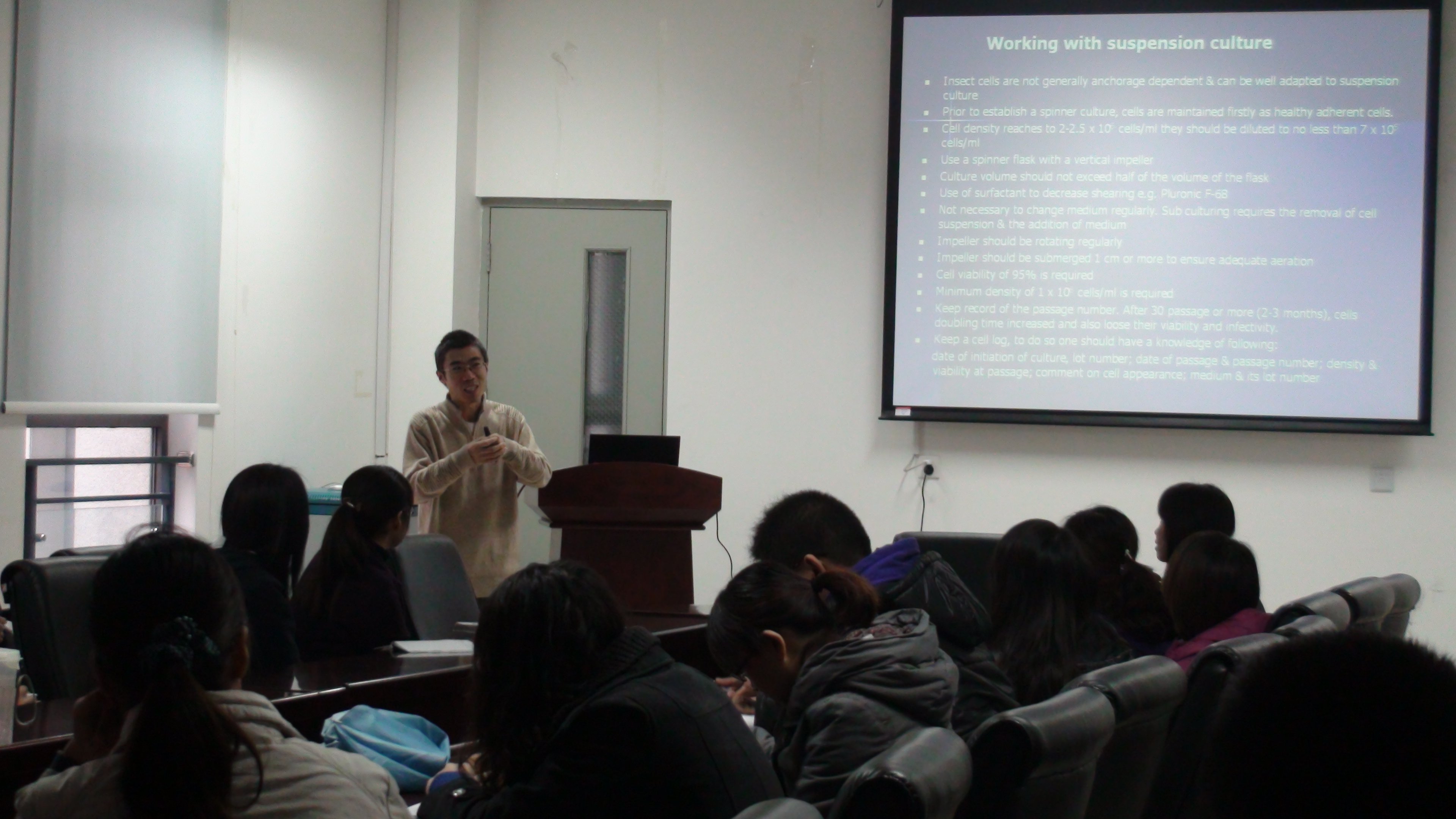 培训内容主要围绕原核表达系统、真核表达系统及其他表达系统等展开,讲解了各表达系统的优缺点,这个过程使同学们视野更加开阔,不仅仅局限于本实验室所用的技术,对于毕业生正值找工作之际提供很大的帮助。并讲解了蛋白在表达过程中常见的问题及解决办法,对同学们的实际操作起了指导性的作用,同时刘新奇教授以其实验室开展的课题为例,解释蛋白的表达、纯化等技术,使同学们更易于理解和掌握。然后讲述了蛋白质鉴定和分析中常用方法,巩固并加深同学们的基础知识。最后将蛋白表达纯化技术与实际生活生产相联系,做到学以致用。