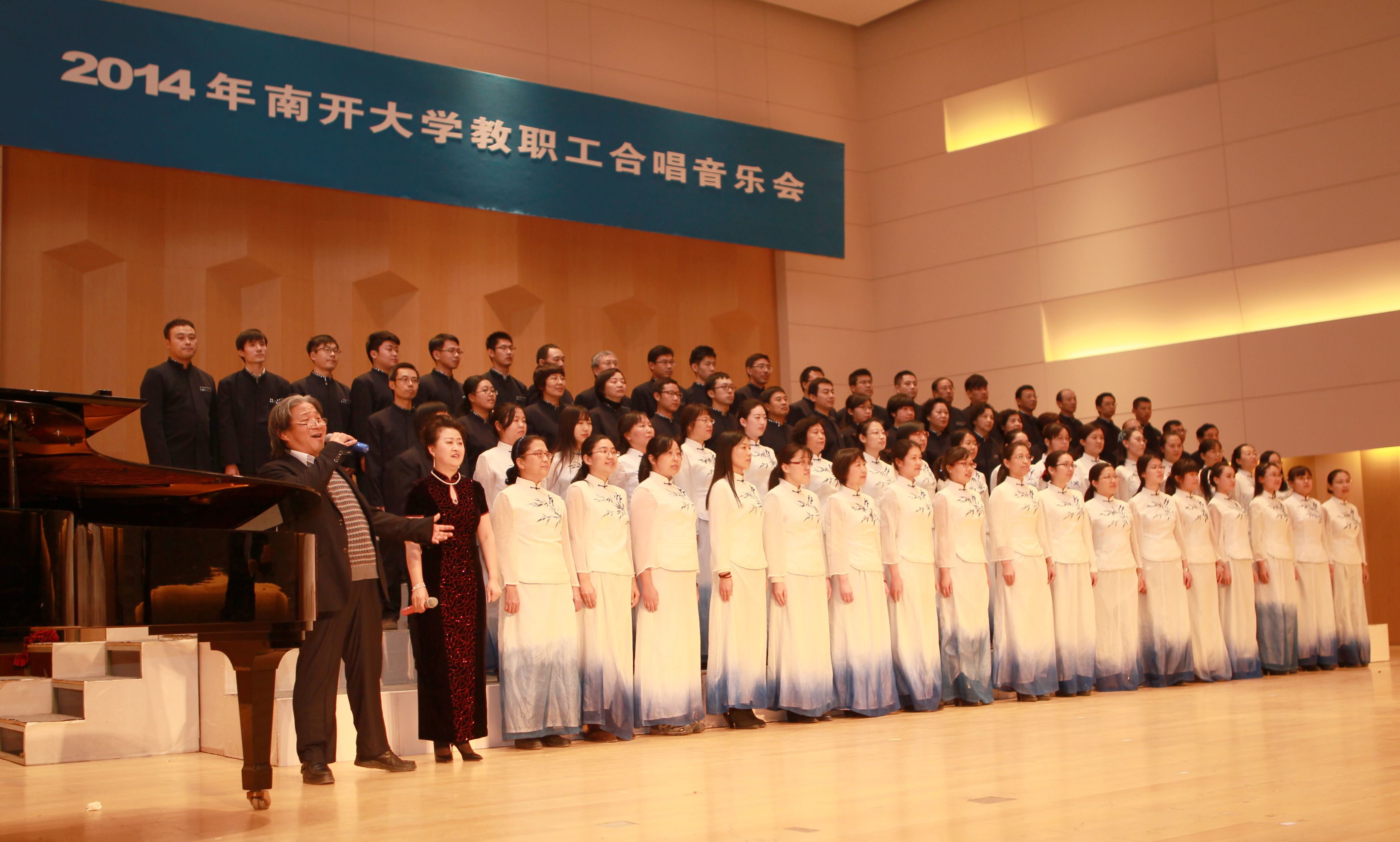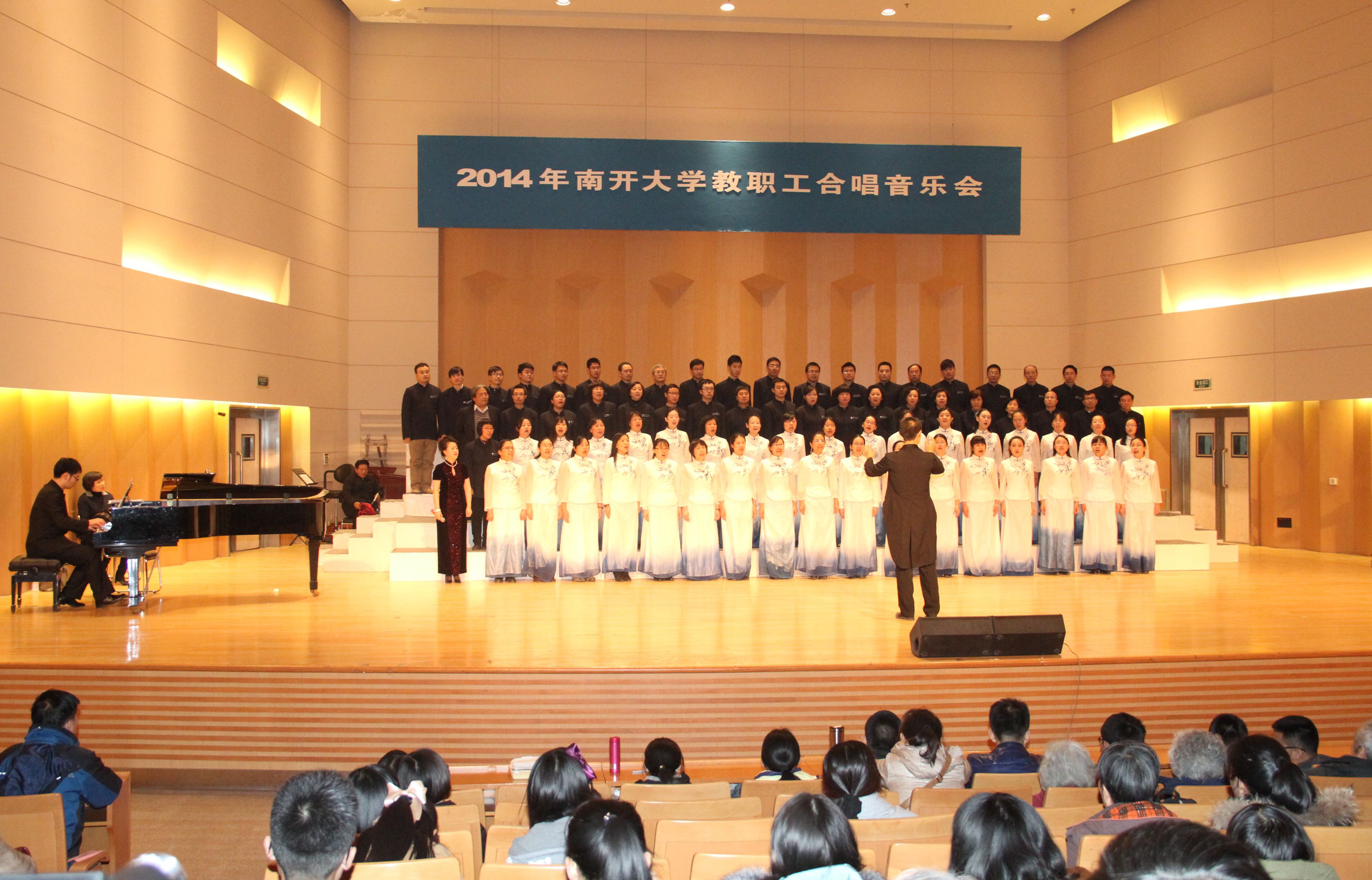12月26日,由学校工会主办的“2014年南开大学教职工合唱音乐会”在田家炳音乐厅隆重举行。全校共有来自各学院、各机关部处的27支队伍参赛,我院教职工合唱队在比赛及组织环节中表现非凡,一举获得合唱比赛甲组一等奖及最佳组织奖两大奖项。