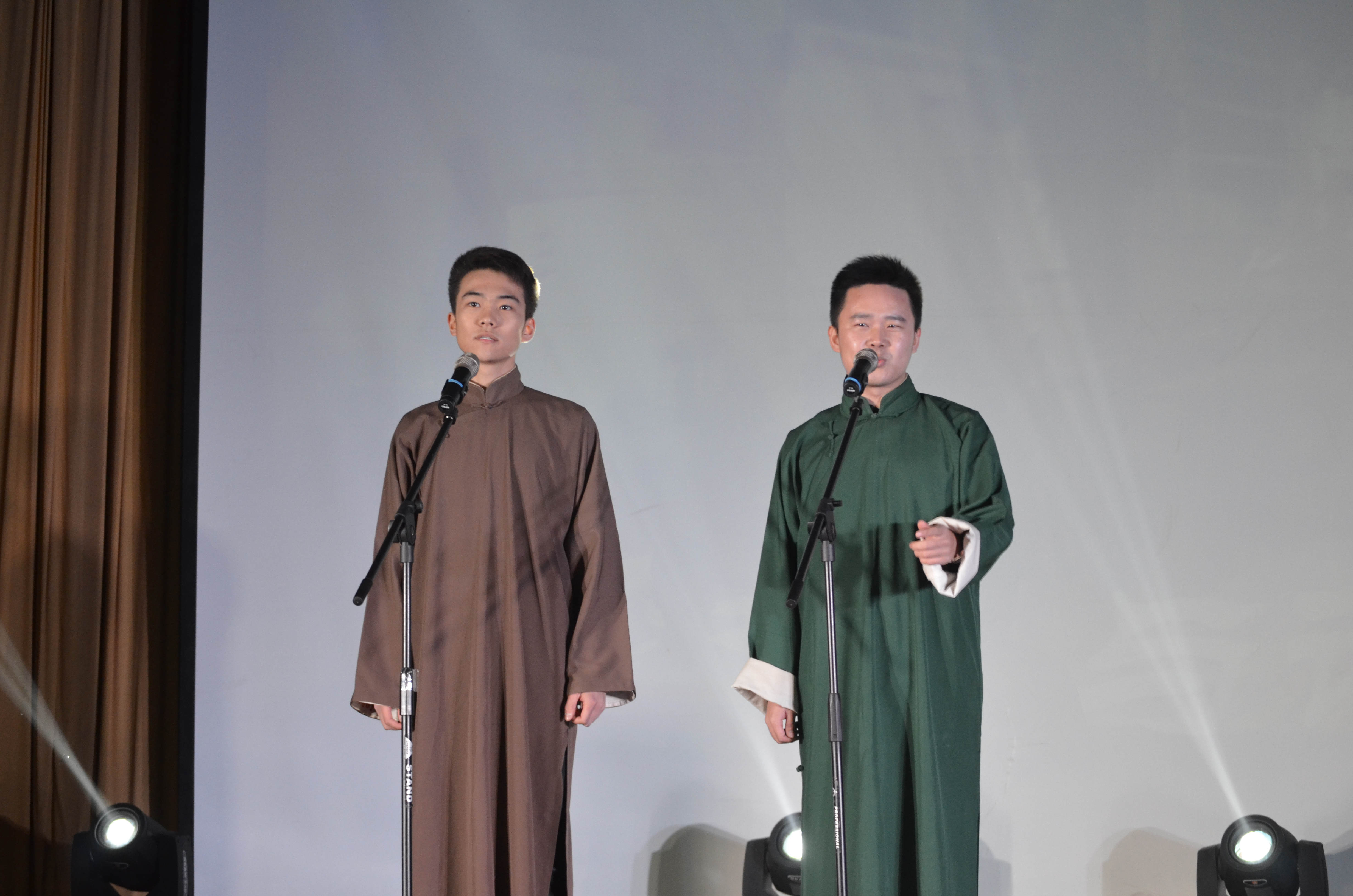 接下来,是由几位11级本科生和我院雪铖、王波两大“男神”联袂带来的《包过志异》,风格迥异的演出服,充满喜感的假发套都让人不由惊叹编剧的脑洞大开。贴近生活却又智慧满满的剧情,不顾自身形象恶搞反串却又与自身有一定相似度的演员安排,导演编剧可谓用心良苦。