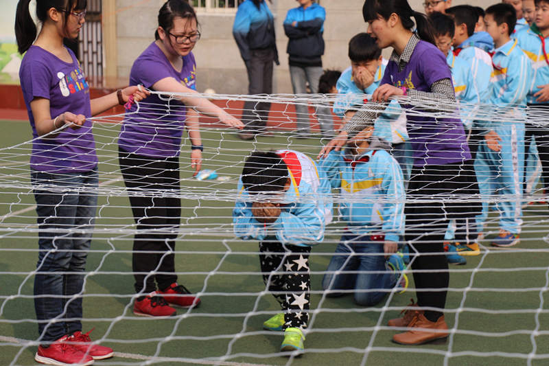 王鑫、程曲汉、刘芯宇、苏鹏四位讲师分别就火灾、地震、车祸、急救等方面进行了知识宣讲。宣讲中讲师与孩子充分互动,手把手教孩子们打绳结,并一同钻绳网,体验“火灾逃生”;他们用自己的亲身经历将孩子们带入情景,用事实让他们了解了地震发生的自救方法;孩子们被邀请上前协助演示,在活动中掌握了车祸发生后砸车窗玻璃的办法;讲师苏鹏利用肢体语言,与大家打成一片,寓教于乐。活动最后,讲师给孩子们分发了自己带来的小礼品,并在操场上进行了合影。
