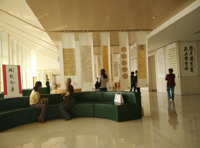 首先,学院教职工参观了校区图书馆,纷纷赞叹图书馆的国际化设计,学生在图书馆可以实现触屏小组分享讨论,并且设立了安静的适合小组研讨的独立会议室。在图书馆七楼,教工们参观了西南联大四校“纪念抗战胜利70周年”书法巡展。