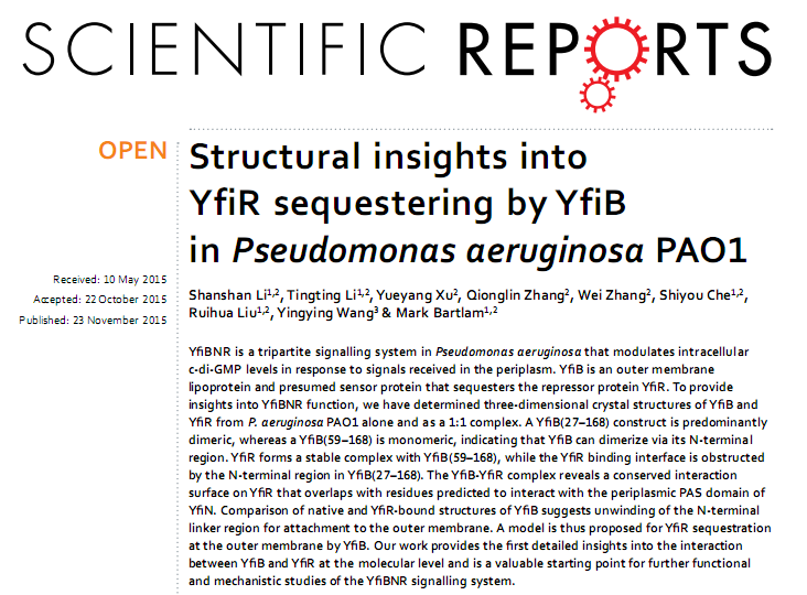 近日,我校外围买球app十大平台官网、药物化学生物学国家重点实验室Mark Bartlam教授的研究团队与环科院王莹莹教授团队在生物膜形成机制研究领域的一项研究成果发表于Nature出版集团《Scientific Reports》杂志上。《Scientific Reports》是Nature出版社旗下一综合科学期刊,专注于进行多学科交叉的研究,在所有综合类期刊中排名第8位。