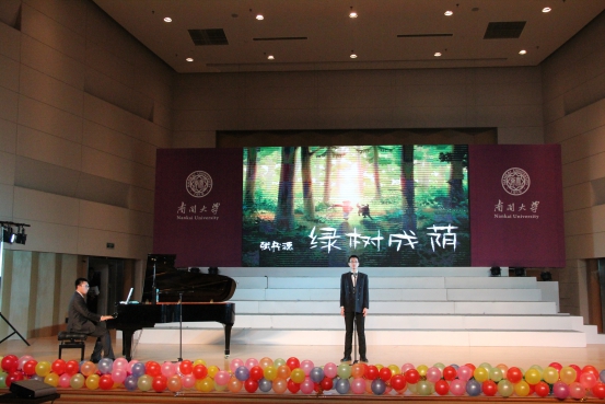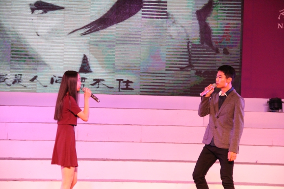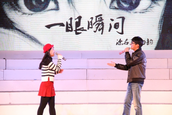 紧接着,生科院涂名蔚、田韵深情对唱《一眼万年》。女声醇美,男声深情,叠加在一起,创造出辽远的意境。
