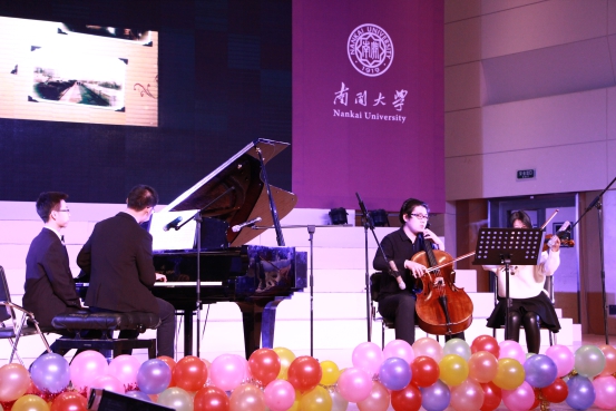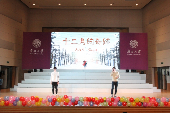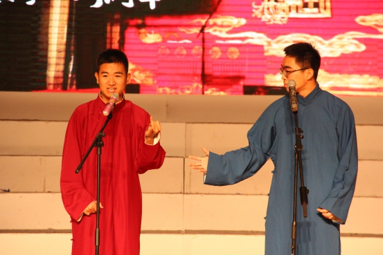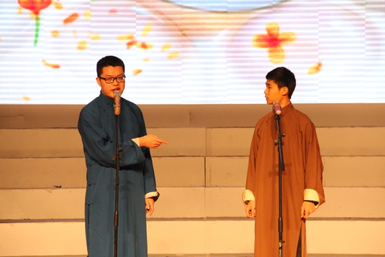 主持人陈曦摇身一变,和袁铭为观众带来相声《吃元宵》。当中国传统文化、南开校园生活配以诙谐的对白、夸张的动作,在场的观众无不捧腹。