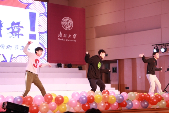 短暂休息后,生科院三大男神震撼登场!新年到,福气来,有心的《招财舞》中,酷帅海盗造型,帅气逼人外形,新颖舞蹈改编重演经典神曲,男神们瞬间让微信墙爆炸,尖叫声爆棚。