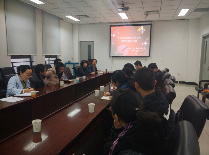 1月11日上午,外围买球app十大平台官网宣传工作组2015年度总结暨表彰会议在生物站会议室召开。学院党委书记吴秀英,党委副书记、副院长李营以及宣传工作组全体成员参加此次大会。