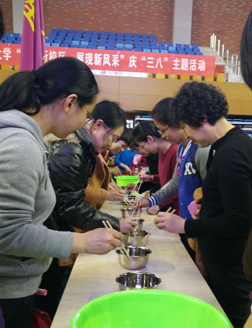 3月7日下午,我院近30名教工参加了学校工会组织的庆三八国际劳动妇女节“走进新校区,展现新风采”的主题活动。活动在津南新校区举行,内容包括新校区健步走,趣味运动会跳绳、踢毽、投篮、倒沙包夹乒乓球等。在健步走环节,我院教工与其他学院教工从图书馆步行到体育馆,大家既参观了崭新、整洁的校园,又在步行中感受了春天的气息。
