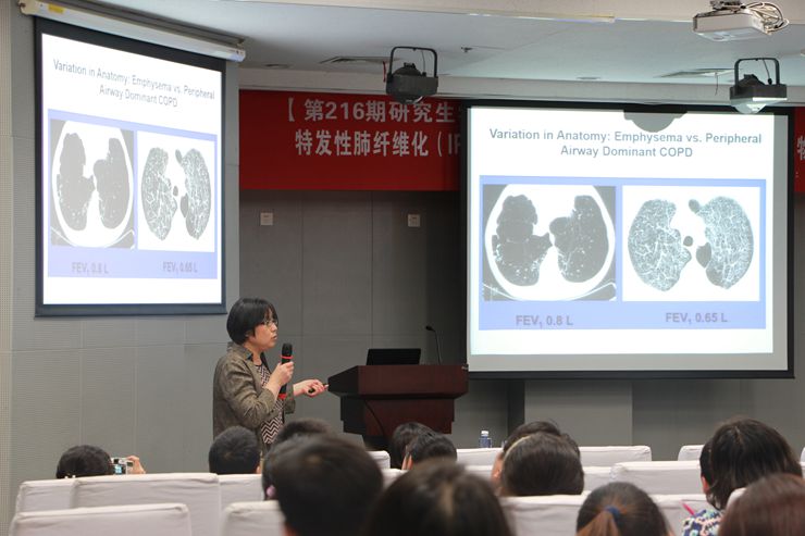 张英泽教授主要介绍了特发性肺纤维化(IPF)和慢性阻塞性肺炎(COPD)的遗传和生物标记的研究。其中特发性肺纤维化是一种慢性进行性且病因不明的肺疾病,其死亡率与多种癌症相当,目前除肺移植外尚无有效治疗方法。张英泽教授和她的团队在美国建立了IPF以及COPD病人的样本库用以相关研究,为部分肺病的早诊断和治疗提供了新的思路。她还提醒大家基础的科研工作一定不能脱离医院的病人样本,只有将临床数据和科研结合起来研究和分析才能有更加有意义的实验结果。张教授深入浅出的演讲让大家对生物标记物的研究有了更加详细的了解。