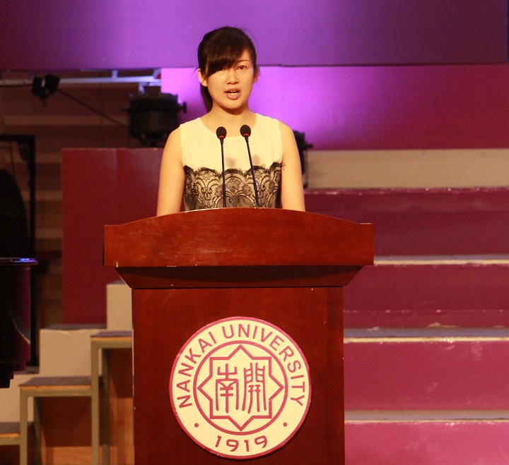 毕业生代表韩丽芳、付静璇分别代表本科生和研究生在典礼上发言。她们回忆了刚走进生科院的时光,表达了对师长和亲友的感恩,总结了自己几年来的收获和成长。最后,她们表示在未来也要恪守生科的教诲,做合格的南开生科人,不辜负母校和生科院的栽培。