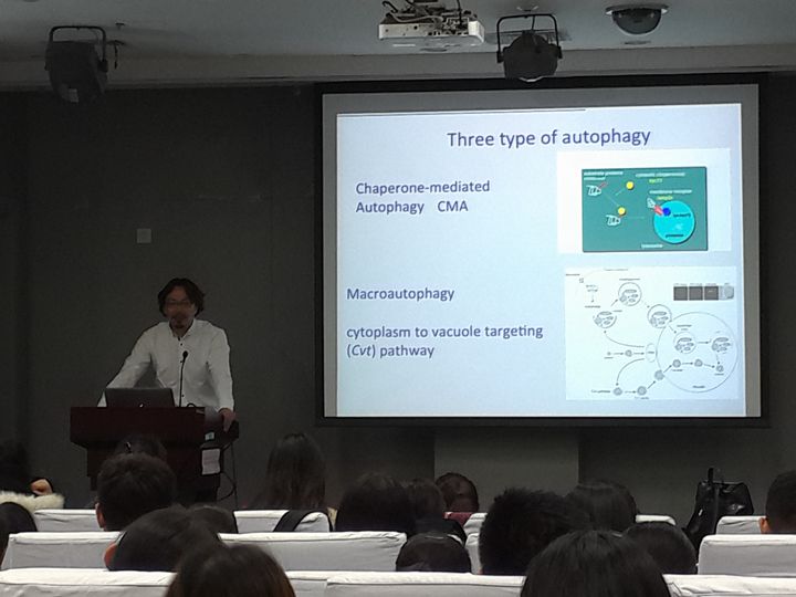 2016年11月3日16时,由中国细胞生物学会、天津市细胞生物学学会、南开大学科协主办的“高端科普”活动――解读诺贝尔奖 “细胞自噬”科普活动在外围买球app十大平台官网生物站一楼报告厅举行。来自清华大学的俞立教授给在座听众带来了一场主题为“细胞自噬”的报告,众多老师和学生前来学习,座无虚席。