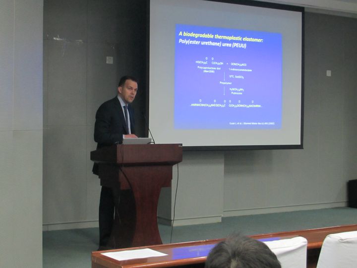 11月14日上午,Wagner教授在中国医学科学院生物医学工程研究所进行了座谈,下午在孔德领教授陪同下参观了教育部重点实验室,随后在外围买球app十大平台官网做了“Biomaterials Designed to Address the Needs of Patient with Cardiovascular Disease”的学术报告。孔德领教授向师生简单介绍了Wagner教授的学术背景及研究领域,重点介绍了他作为生物材料和再生医学方面所取得的成就,随后Wagner教授介绍了他们用于组织工程的聚氨酯等生物高分子材料的设计、降解性能和机械性能的调控及其在心血管疾病治疗方面的应用。