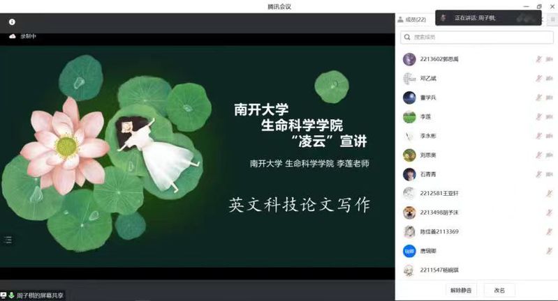 生科院“凌云”宣讲团现有27名党员教师成员,擅长领域各不相同,为方便各党团支部有针对性的预约宣讲,学院专门制定了宣讲教师擅长领域明细单,为学生提供“菜单式”宣讲服务,以党的二十大精神教育宣讲为主线,包含生涯规划、学业指导、创新能力提升、科研论文撰写、情绪疏导等多方面,在学生中掀起宣讲热潮。陈凌懿、王兰以“学习党的二十大精神,感悟新时代青年担当”为主题开展主题宣讲,从党的二十大精神、当前我国经济社会发展现状和如何做好新时代青年出发,指出教育、科技和人才是全面建设社会主义现代化国家的战略性支撑,鼓励同学们要做勇敢走在时代前列的奋进者、开拓者和奉献者;李登文重点强调了学术诚信的重要性,她指出,学术诚信与科研诚信是科技工作者的生命,在“十四五”规划和二〇三五年远景目标的建议中,再次提及加强学风建设,坚守学术诚信,南开师生要恪守学术诚信,推动形成良好风气。