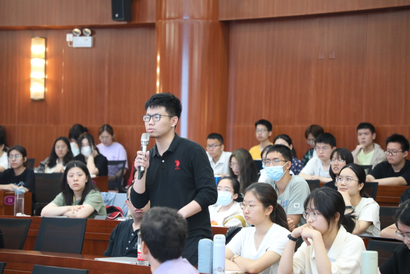 课堂提问环节,同学们积极举手,踊跃发言,针对细胞死亡的多种方式、调控机制、研究方法、疾病治疗展开提问,与袁钧瑛院士互动交流,氛围活跃。课程结束时,袁钧瑛院士鼓励同学们在科研的道路上独立思考,勇于探索,同学们纷纷起身,用热烈的掌声欢送。袁钧瑛院士新颖独特的讲课风格、极具启发的教学方式、有趣幽默的言语展示、活跃互动的课堂氛围给同学们留下了深刻印象,令同学们受益颇深。