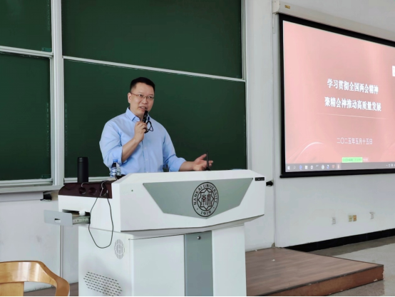 5月15日下午,南开大学外围买球app十大平台官网举办学习两会精神专题会议,马克思主义学院蓝海老师应邀担任主讲人,为全院师生带来一场深刻且生动的两会精神解读盛宴。