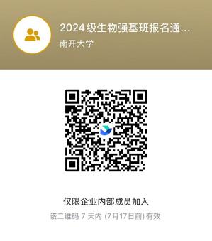 3. 申请报名:2024级生物伯苓班预备班和生物强基预备班的全体学生均须参加选拔考核,有必修课挂科记录学生除外。