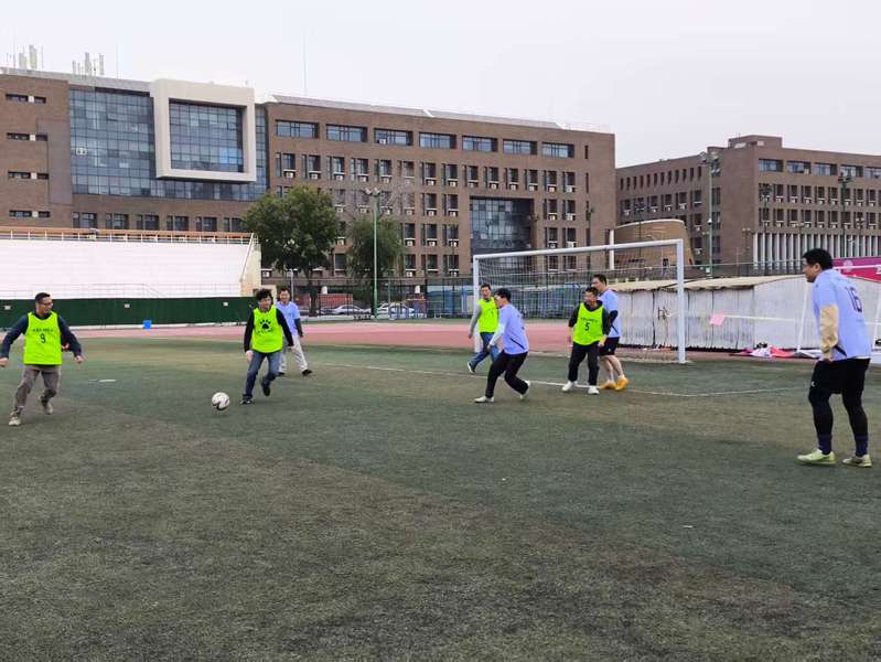 仪式结束后,足球队队长王恺老师为参训的首批教工队员发放了崭新的定制队服。队员们换上统一的战袍,精神抖擞地投入到了首次队内训练中。训练赛环节,队员们虽然平日忙于教学科研,但一踏上球场便迅速进入状态,跑动、传球、射门,场面紧张激烈而又充满欢声笑语,充分享受着足球运动带来的快乐。