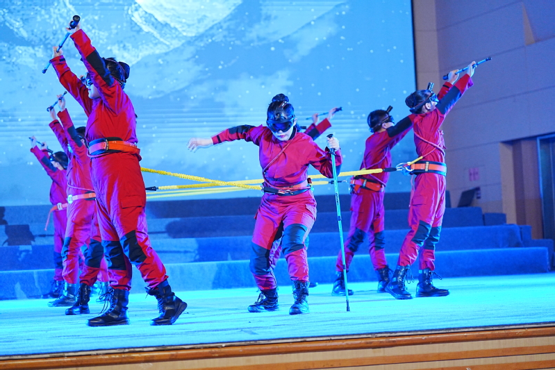 艺术展演环节精彩纷呈:天津市视力障碍学校学生以激昂的鼓乐《吉祥天鼓》开场;视障艺术家刘宝萍与刘畅合唱《土耳其进行曲》,清亮歌声直击心灵;情景讲述《拥抱美好新时代》由视障与听障演员共同演绎,声形交织出奋进的时代图景;舞蹈《看不见的顶峰》中,盲杖化作登山杖,舞出生命的坚韧与不屈;视障艺术家许跃、刘涛带来的京剧《断密涧》选段节奏紧凑、张力十足;小海豚融合合唱团以清澈童声演唱《我们是天津娃娃》,展现津门风情;王浩的吉他弹唱《写给自己的歌》传递出盲人群体对生命的深刻思考;袁建玲、刘培英演唱的天津时调《军民鱼水情》表达出浓浓的军民情谊;“星光组合”盲童合唱《我爱天津卫》,展示新时代残疾青少年的精神风貌;器乐合奏《茉莉花随想曲》由多位残障艺术家联袂演奏,赋予经典全新生命力;天津理工大学聋人工学院舞蹈队则以中国传统“盘鼓舞”形式演绎《适此乐土》,弘扬优秀传统文化;刘宝萍演唱的《春天的芭蕾》以诗意旋律绽放春日活力。演出尾声,全体演员登台,与观众齐声合唱《你是我的眼》。歌声化作温暖的纽带,将残健心灵紧密相连。